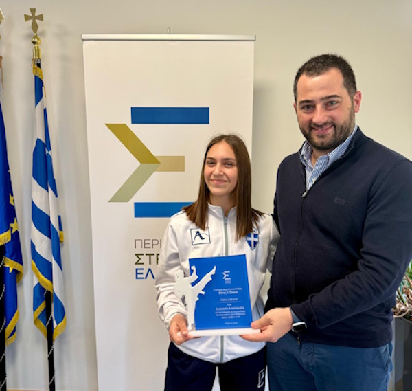 Ο Περιφερειάρχης Στερεάς Ελλάδας Φάνης Σπανός και ο Εντεταλμένος Περιφερειακός Σύμβουλος Αθλητισμού Ηλίας Καλτσάς συναντήθηκαν σήμερα, Πέμπτη 13 Μαρτίου 2025, και βράβευσαν δυο νεαρές αθλήτριες, από την Π.Ε. Εύβοιας, οι οποίες διακρίθηκαν στο 52ο Ευρωπαϊκό Πρωτάθλημα Καράτε Εφήβων-Νεανίδων, Νέων Ανδρών-Γυναικών και Ανδρών-Γυναικών «U21» που διεξήχθη στην πόλη Bielsko-Biala της Πολωνίας.