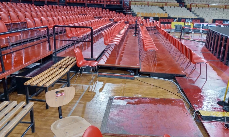 Το cube και τα νέα υπερσύγχρονα μηχανήματα στο γυμναστήριο του Ολυμπιακού έχουν υποστεί μεγάλες ζημιές, ενώ τεράστιες είναι οι φθορές και στο παρκέ.