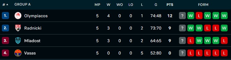 Στο έτερο παιχνίδι του ομίλου, η Ραντνίτσκι επιβλήθηκε με 14-11 της Μλαντόστ, με τις δύο ομάδες να ισοβαθμούν στη δεύτερη θέση και στο -3 από τον Ολυμπιακό. Για την 6η και τελευταία αγωνιστική (10/2), οι Πειραιώτες θα υποδεχθούν τη Ραντνίτσκι και με νίκη θα εξασφαλίσουν ως πρώτοι την πρόκριση στους «8»!