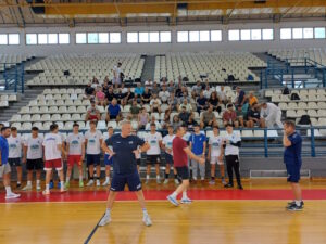 Το πρακτικό σκέλος, το οποίο πραγματοποιήθηκε στο Κλειστό Γυμναστήριο «Χαλκιοπούλειο», διεξήχθη παράλληλα το προπονητικό camp όπου συμμετείχαν οι αθλητές της Εθνικής Ομάδας των εφήβων, οι οποίοι προετοιμάζονται για την τελική φάση του Πανευρωπαϊκού Πρωταθλήματος που θα πραγματοποιηθεί τον προσεχή μήνα. Οι αθλητές και λοιποί συμμετέχοντες είχαν την ευκαιρία να εφαρμόσουν στην πράξη τις γνώσεις που αποκόμισαν από το θεωρητικό σκέλος, μέσα από εξειδικευμένες ασκήσεις και πρακτικές προπονήσεις.