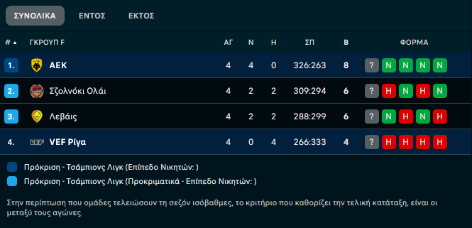 Η βαθμολογία του ομίλου: