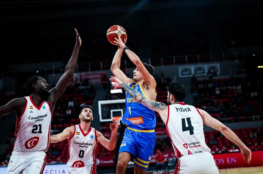 Το Περιστέρι ήταν ανταγωνιστικό από την αρχή του αγώνα, με τους Ισπανούς να έχουν το προβάδισμα, αλλά να αδυνατούν να ξεφύγουν στο σκορ, ενδεικτικό του 22-21 της πρώτης περιόδου. Η ομάδα του Βασίλη Ξανθόπουλου είδε τη Σαραγόσα να ξεφεύγει με έξι πόντους, λίγο πριν το τέλος του πρώτου μέρους, όμως οι Νίκολς και Κακλαμανάκης είχαν τον τελευταίο λόγο διαμορφώνοντας το σκορ του πρώτου ημιχρόνου στο 43-38.