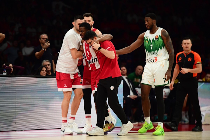 Ο Κίναν Έβανς φαίνεται να τραυματίστηκε σε μια ανύποπτη φάση, με το ιατρικό τιμ των Πειραιωτών να συνοδεύει τον Αμερικανό στα αποδυτήρια του φαληρικού γηπέδου.