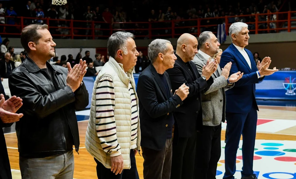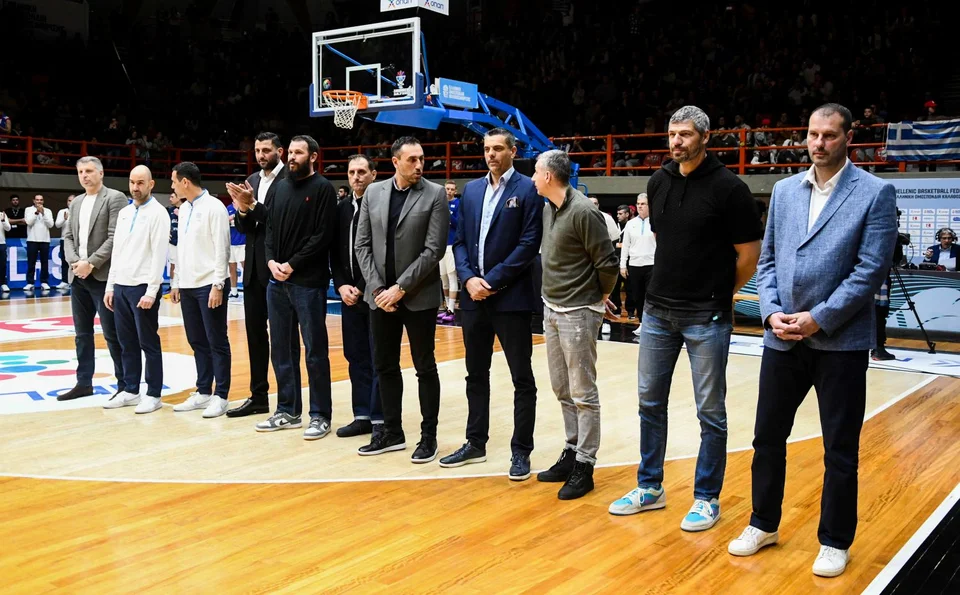 Την αποθέωση γνώρισαν τα μέλη της Εθνικής ομάδας μπάσκετ που είχαν θριαμβεύσει στο Βελιγράδι το 2005, στο ημίχρονο της αναμέτρησης της Ελλάδας με την Ολλανδία στο κλειστό «Δ. Τόφαλος».