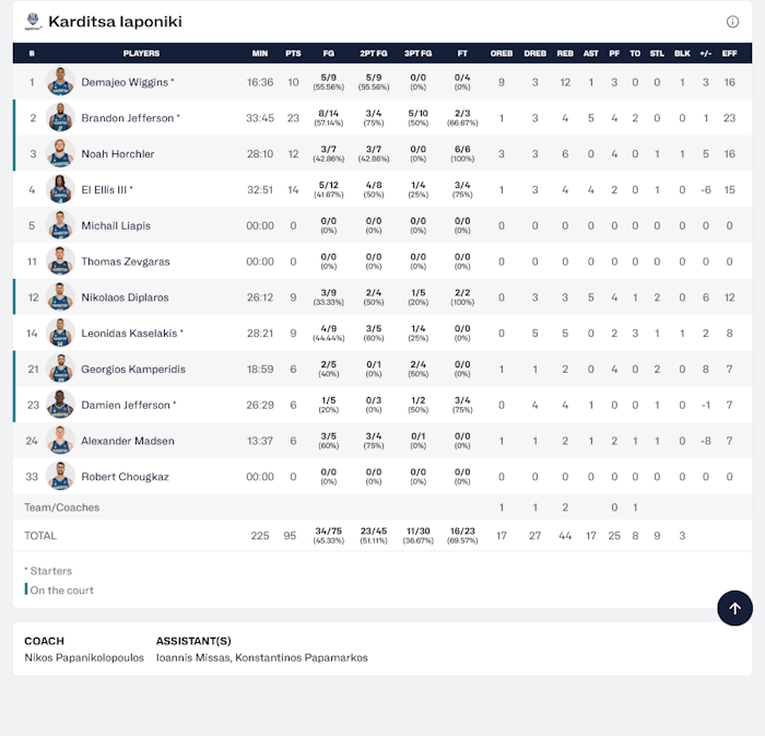 Ξεχώρισαν: Ο Ντιμάτζιο Γουίγκινς με 10 πόντους και 12 ριμπάουντ και ο Ελ Έλις με 14 πόντους, 4 ασίστ και 4 ριμπάουντ, από πλευράς γηπεδούχων ο Νοάμ Γιακόβ με 27 πόντους και 8 ασίστ