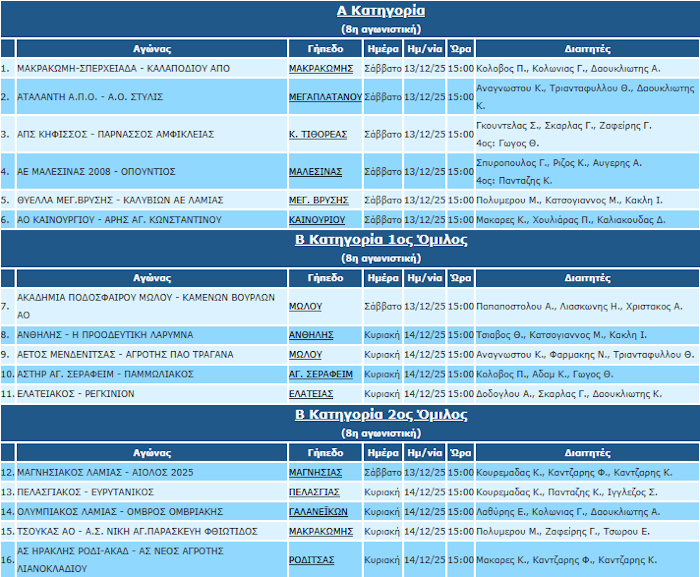 Aναλυτικά το πρόγραμμα της 8ης αγωνιστικής σε Α’ και Β’ Κατηγορία Φθιώτιδας.