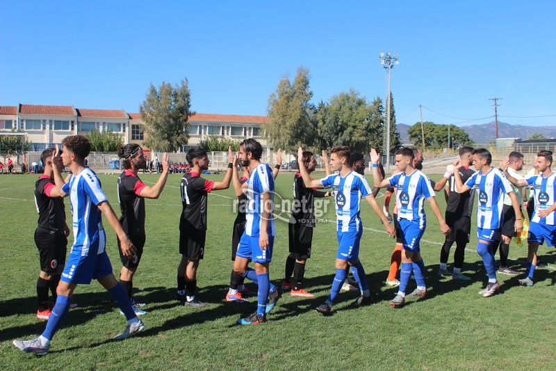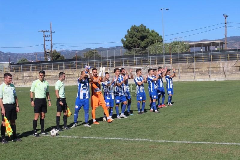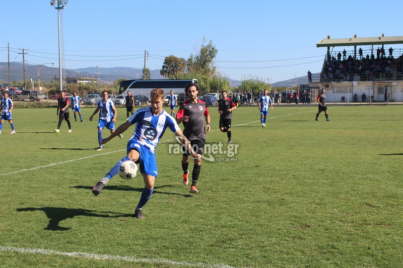 Η Ελλάς Σύρου αιφνιδίασε τους γηπεδούχους καθώς με την συμπλήρωση του πρώτου λεπτού ο Ζέχι από αριστερά έβγαλε τη σέντρα ο Μελισσόπουλος έπιασε την κεφαλιά στέλνοντας τη μπάλα στα δίχτυα του Τσάμη (0-1). Στο 17′ η πρώτη ευκαιρία για τους παίκτες του Βαγγέλη Λέντα. Εκτέλεση φάουλ του Μαλισσόβα από δεξιά κεφαλιά του Μόσχου Ν. μπλόκαρε ο Μπίμτσης. Δύο λεπτά αργότερα (19′) η Ελλάς Σύρου πέτυχε και δεύτερο τέρμα όταν από αριστερά ο Μάτσος με σέντρα βρήκε τον Παυλόπουλο με τον αρχηγό των φιλοξενούμενων να σκοράρει με δυνατή κεφαλιά για το 0-2.