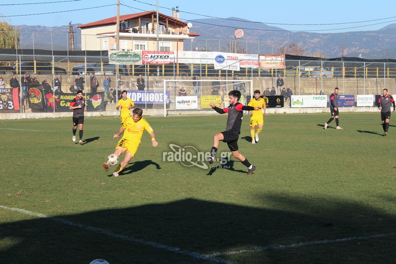 Το πρώτο ημίχρονο δεν επεφύλασσε κάποιο ουσιαστικό θέαμα με τις δύο ομάδες να παίζουν αναγνωριστικά για μεγάλο διάστημα. Πιο τυχερή η ομάδα της Κορίνθου καθώς στο 30ο λεπτό έπειτα από κερδισμένη κόντρα βγήκε η αντεπίθεση από δεξιά. Ο Αλμπάνης ξέφυγε και εν τέλη μοίρασε στον Παπουλή ο οποίος πλάσαρε από κοντά νικώντας τον Τσάμη για το 0-1.