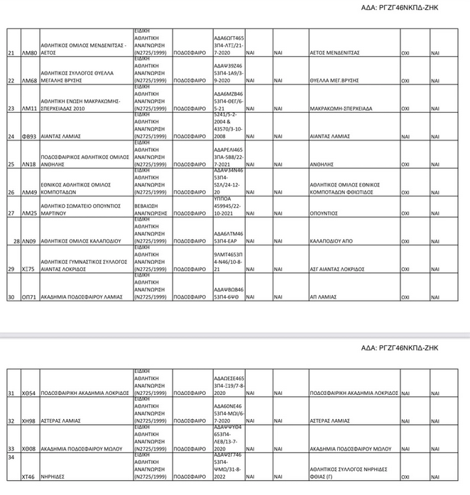 Τα 21 σωματεία που δεν έχουν δικαίωμα συμμετοχής: