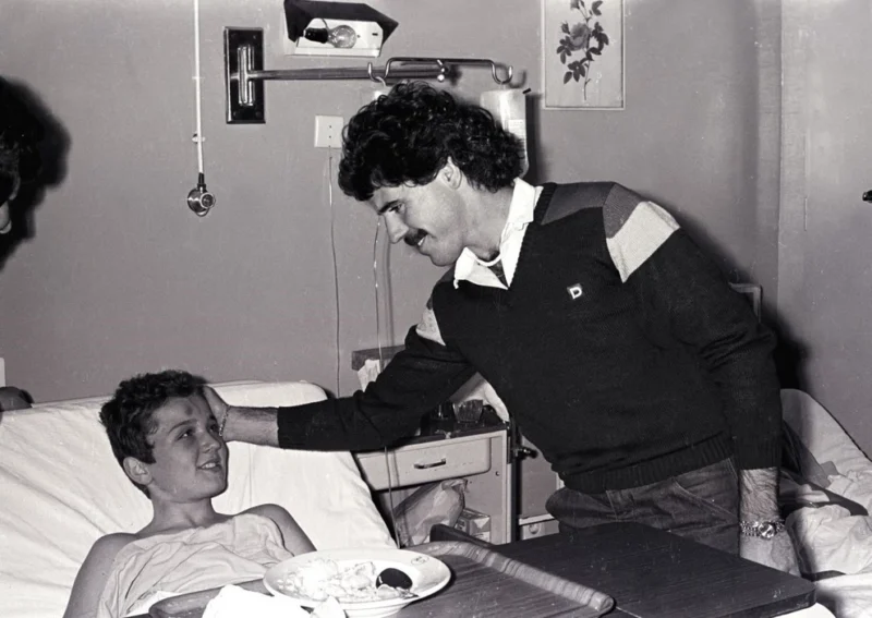 Ο Νίκος Αναστόπουλος παρηγορεί έναν νεαρό τραυματία στο Τζάνειο