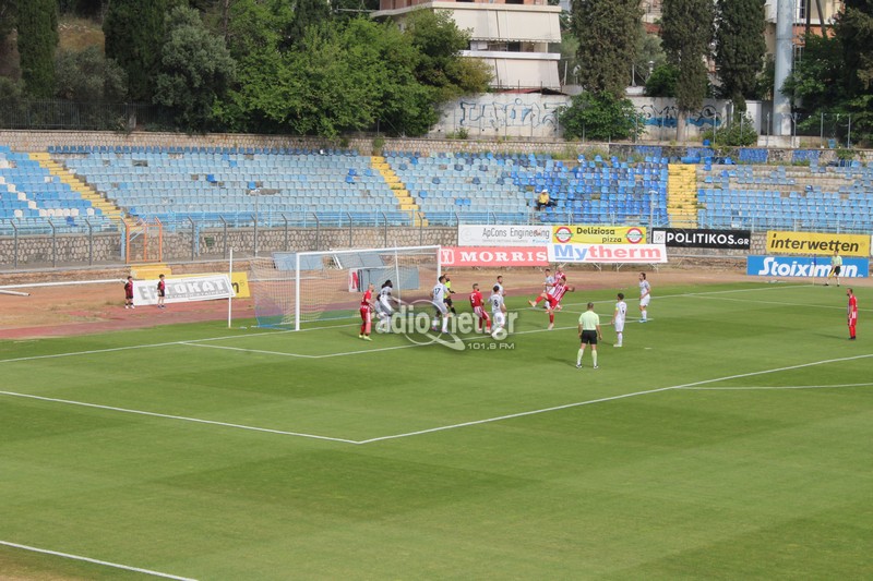 Στο πρώτο λεπτό των καθυστερήσεων κεφαλιά του Βασίλη Νικολόπουλου η μπάλα λίγο πάνω από τα δοκάρια του Τσάμη.