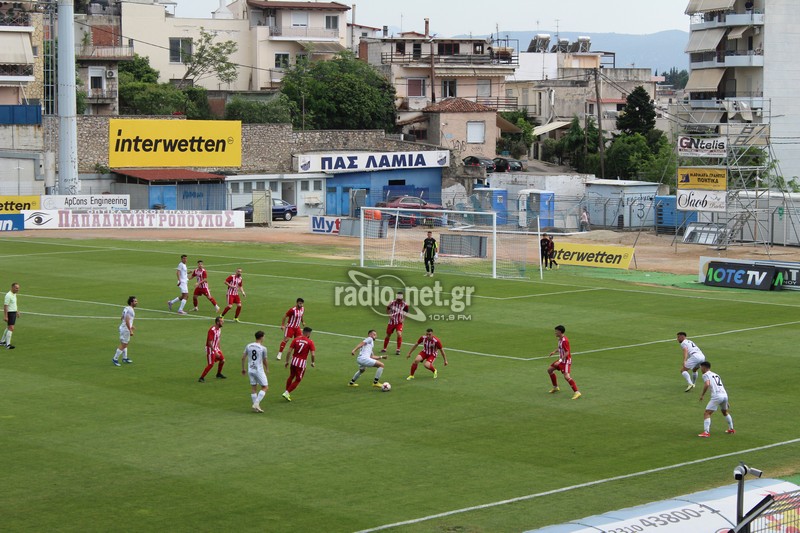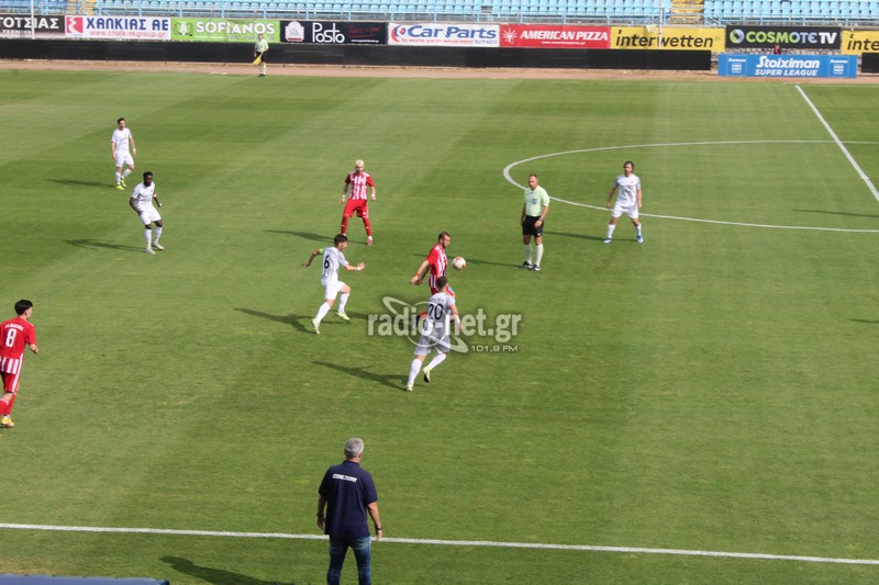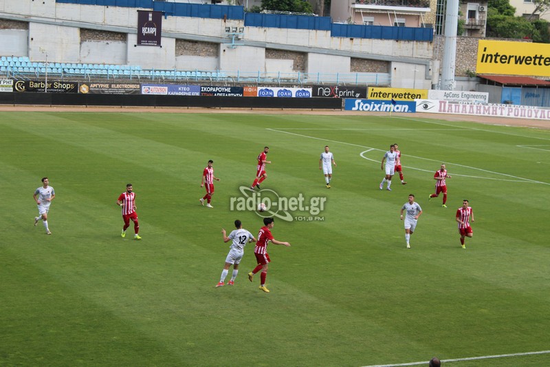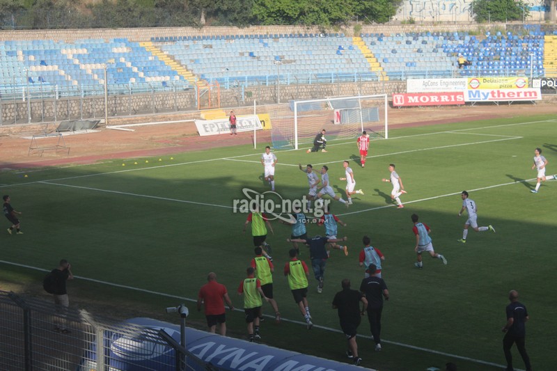 Στο πρώτο λεπτό των καθυστερήσεων κεφαλιά του Βασίλη Νικολόπουλου η μπάλα λίγο πάνω από τα δοκάρια του Τσάμη.