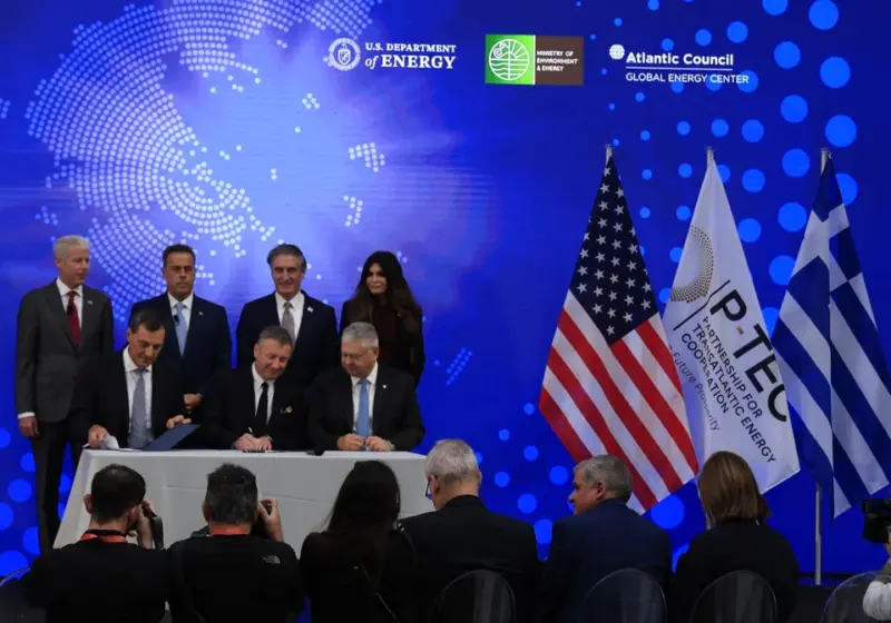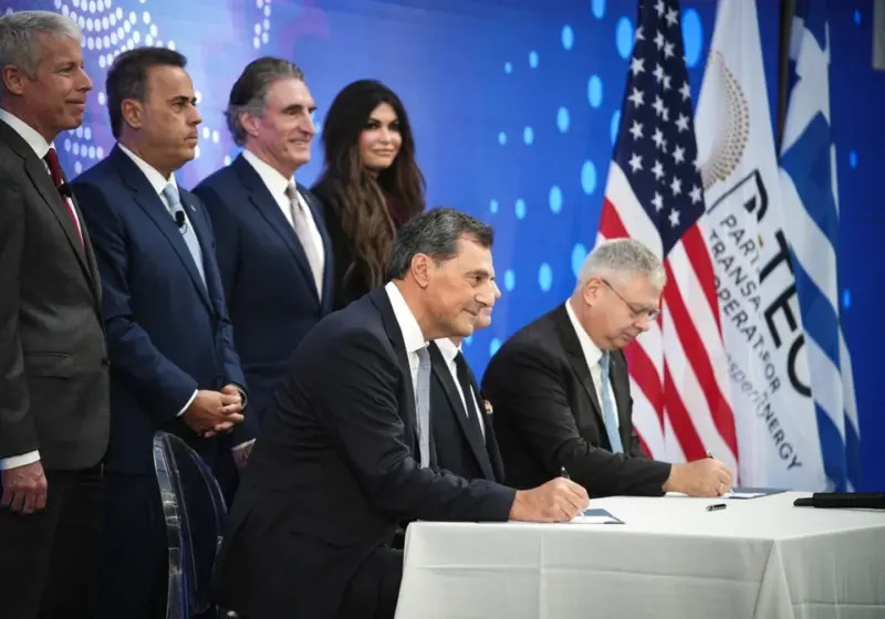 Συγκεκριμένα, υπεγράφη η συμφωνία μεταξύ Helleniq Energy, Εnergean και ExxonMobil για έναρξη γεωτρήσεων στο Ιόνιο, με την παρουσία του Αμερικανού υπουργού Ενέργειας Κρις Ράιτ και του Αμερικανού υπουργού Εσωτερικών Νταγκ Μπέργκμαν, του Έλληνα υπουργού Ενέργειας Σταύρου Παπασταύρου και της πρέσβη των ΗΠΑ, Κίμπερλι Γκίλφοϊλ.