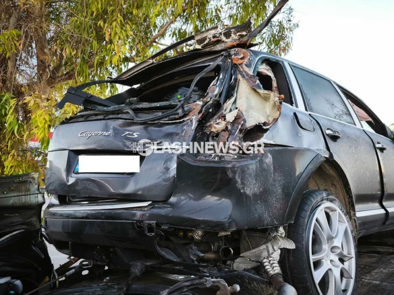 Οι φωτογραφίες είναι σοκαριστικές και δείχνουν την σφοδρότητα της σύγκρουσης μεταξύ του Suzuki που οδηγούσε ο άτυχος Παναγιώτης και της Πόρσε Καγιέν του 45χρονου επιχειρηματία.