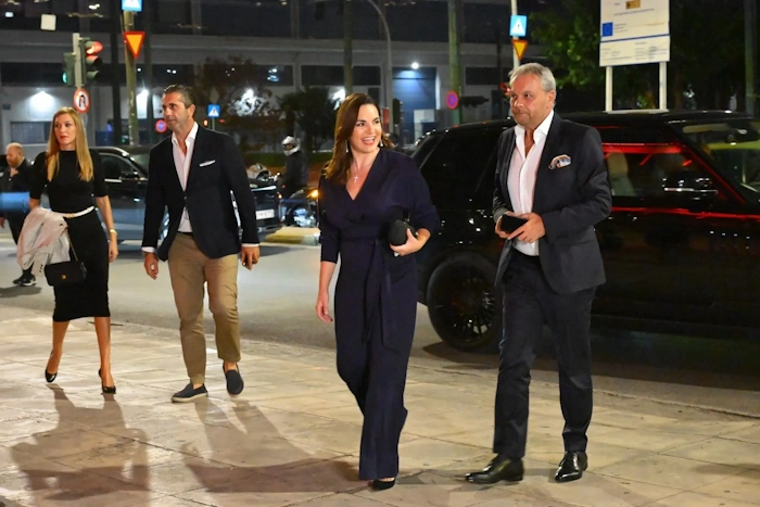 Στο νυχτερινό κέντρο έφτασαν αρχικά επιχειρηματίες και πολιτικοί, μεταξύ των οποίων ο υπουργός Ναυτιλίας Βασίλης Κικίλιας, η υπουργός Εργασίας Νίκη Κεραμέως, και η υπουργός Τουρισμού Όλγα Κεφαλογιάννη, ενώ ακολούθησε η Κίμπερλι Γκίλφοϊλ που πόζαρε χαμογελαστή.
