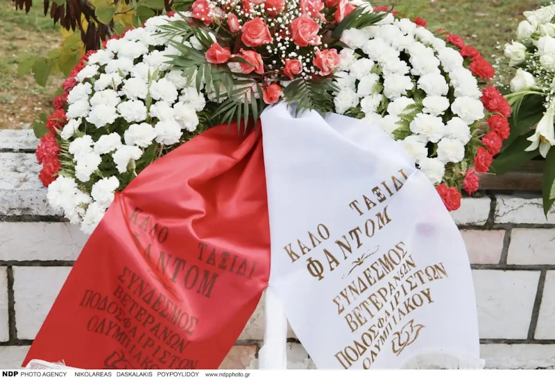 Στο τελευταίο αντίο βρέθηκαν, φυσικά, κορυφαίες “φιγούρες” του ελληνικού ποδοσφαίρου, όπως ο Αντώνης Αντωνιάδης, άνθρωποι από τον πολιτικό και τον καλλιτεχνικό χώρο, όπως ο Νίκος Χαρδαλιάς και ο Κώστας Πρέκας, ενώ στεφάνια έστειλαν όλες οι ομάδες που αγωνίστηκε αλλά και ο Βαγγέλης Μαρινάκης.