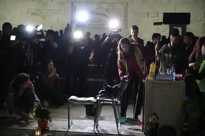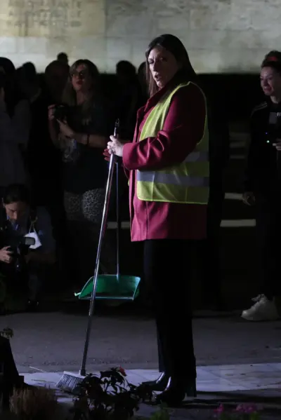 Κωνσταντοπούλου και Ρούτσι καθάρισαν τον χώρο μπροστά από το Μνημείο του Άγνωστου Στρατιώτη -Με σκούπες και φαράσια