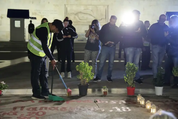 Το βράδυ της Κυριακής (26/10) περίπου 30-40 αλληλέγγυοι συγκεντρώθηκαν στο Μνημείο του Αγνώστου Στρατιώτη, στο σημείο όπου αναγράφονται τα 57 ονόματα των θυμάτων της τραγωδίας στα Τέμπη, και προχώρησαν σε καθαριότητα του χώρου.