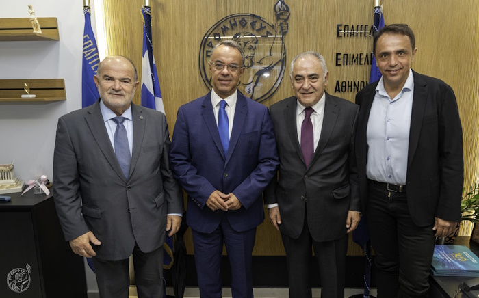 Ο Βουλευτής Φθιώτιδας της Νέας Δημοκρατίας, κ. Χρήστος Σταϊκούρας, επισκέφθηκε χθες, Δευτέρα 6 Οκτωβρίου, το Επαγγελματικό Επιμελητήριο Αθηνών (ΕΕΑ), όπου συναντήθηκε με τον Πρόεδρο, κ. Γιάννη Χατζηθεοδοσίου, και μέλη της Διοίκησης. Στη συνάντηση συμμετείχε και ο Πρόεδρος της Γενικής Συνομοσπονδίας Επαγγελματιών Βιοτεχνών Εμπόρων Ελλάδας (ΓΣΕΒΕΕ), κ. Γιώργος Καββαθάς.