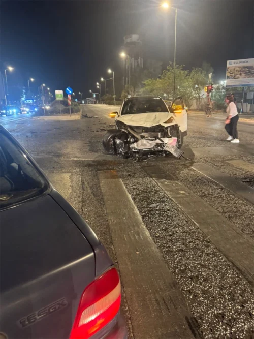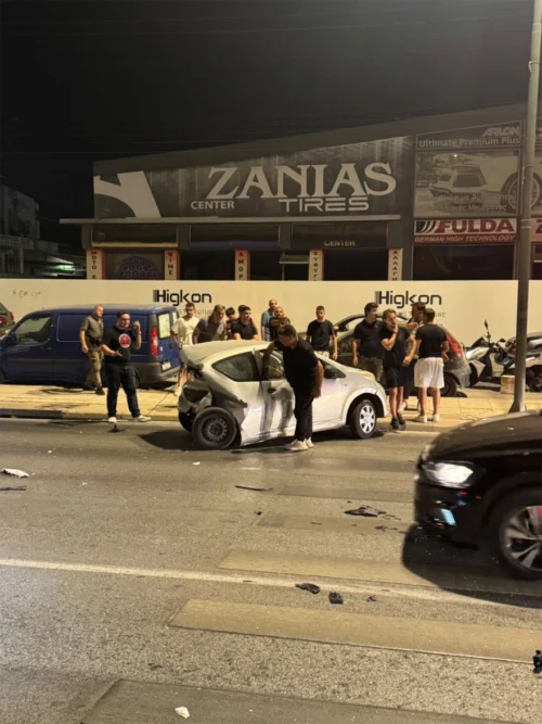 Από τη σύγκρουση το ένα όχημα πέρασε από τη διασταύρωση, στο ύψος της πρώην αμερικανικής βάσης, στο αντίθετο ρεύμα κυκλοφορίας και συγκρούστηκε διαδοχικά με το τρίτο ΙΧ και το ταξί.
