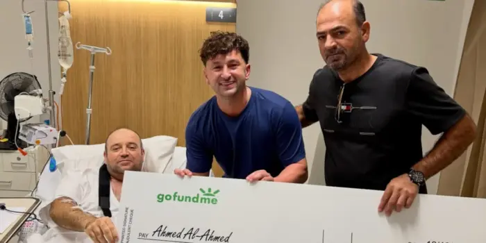 Ο Άχμεντ Αλ-Άχμεντ, ο ήρωας που αφόπλισε έναν ένοπλο κατά τη διάρκεια των τρομοκρατικών επιθέσεων στην παραλία Μπόνται της Αυστραλίας, έλαβε μια επιταγή 2,5 εκατομμυρίων δολαρίων.