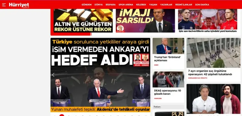 Ενδεικτικά είναι τα πρωτοσέλιδα των τουρκικών Μέσων με την Hurriyet να αναφέρει «συναντήθηκαν με κοινό αντιτουρκικό συναίσθημα». Από την πλευρά της η Milliyet, γράφει χαρακτηριστικά «κοινοί λογαριασμοί για τη συμμαχία του κακού».