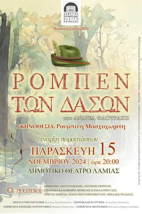 Το ΔΗ.ΠΕ.ΘΕ. Ρούμελης ανοίγει την θεατρική σεζόν 2024-2025 με την πρεμιέρα της Παιδικής Σκηνής του την Παρασκευή 15 Νοεμβρίου και ώρα 20:00 στο Δημοτικό Θέατρο Λαμίας με την παράσταση «Ρομπέν των Δασών».