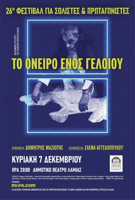 Το 26ο Φεστιβάλ για Σολίστες & Πρωταγωνιστές, που διοργανώνει το ΔΗ.ΠΕ.ΘΕ. Ρούμελης, συνεχίζεται δυναμικά με μια ακόμη μεγάλη θεατρική στιγμή. Την παράσταση «Το Όνειρο ενός Γελοίου», βασισμένη στο ομώνυμο έργο του Φιοντόρ Ντοστογιέφσκι, την Κυριακή 7 Δεκεμβρίου, στις 20:00, στο Δημοτικό Θέατρο Λαμίας.
