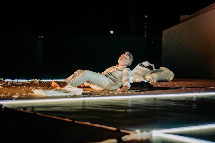 Ένας σωµατικός µονόλογος, γεμάτος ένταση, συνομιλεί µε τα υπαρξιακά ερωτήματα του σύγχρονου ανθρώπου, που αναζητά μια βαθιά, ανθρώπινη εμπειρία.