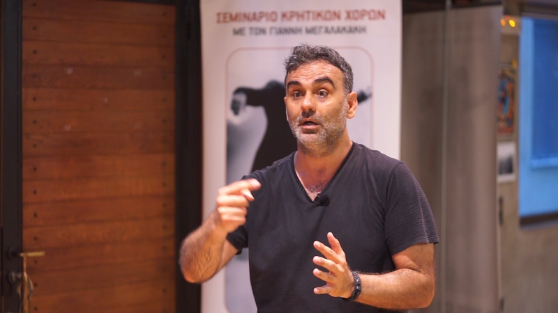 Μια παράσταση στην οποία οι θεατές παρακολουθούν ένα «μάθημα» διδασκαλίας κρητικών χορών σε άτομα κάθε ηλικίας και χορευτικού επιπέδου σε αόριστο χρόνο και τόπο.