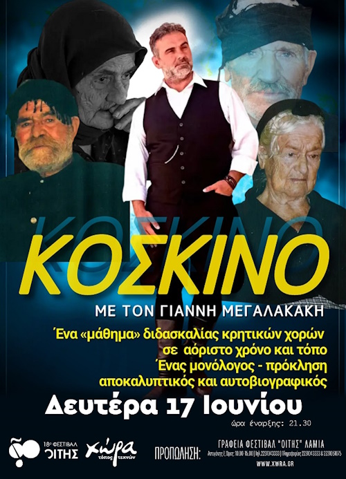 Ο Γιάννης Μεγαλακάκης, ερευνητής και δάσκαλος κρητικών χορών, έρχεται στον Τόπο Τεχνών “Χώρα” στα Λελέικα Υπάτης την Δευτέρα 17 Ιουνίου 2024, με την παράσταση «Το Κόσκινο»!