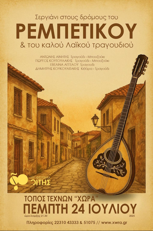 Φεστιβάλ Οίτης 2025: Σεργιάνι στους δρόμους του Ρεμπέτικου & του καλού Λαϊκού τραγουδιού – Πέμπτη 24 Ιουλίου 2025 – Τόπος Τεχνών “Χώρα”