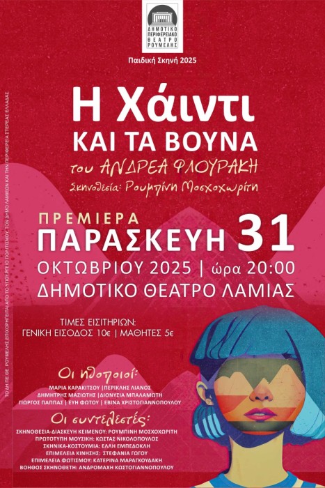 Η Παιδική Σκηνή του ΔΗ.ΠΕ.ΘΕ. Ρούμελης ανοίγει και φέτος αυλαία παρουσιάζοντας την κλασική ιστορία της Χάιντι, την Παρασκευή 31 Οκτωβρίου 2025, στο Δημοτικό Θέατρο Λαμίας, σε μια παράσταση με φαντασία, χιούμορ και τρυφερότητα, που διασκεύασε ο συγγραφέας Ανδρέας Φλουράκης και σκηνοθέτησε η Ρουμπίνη Μοσχοχωρίτη.