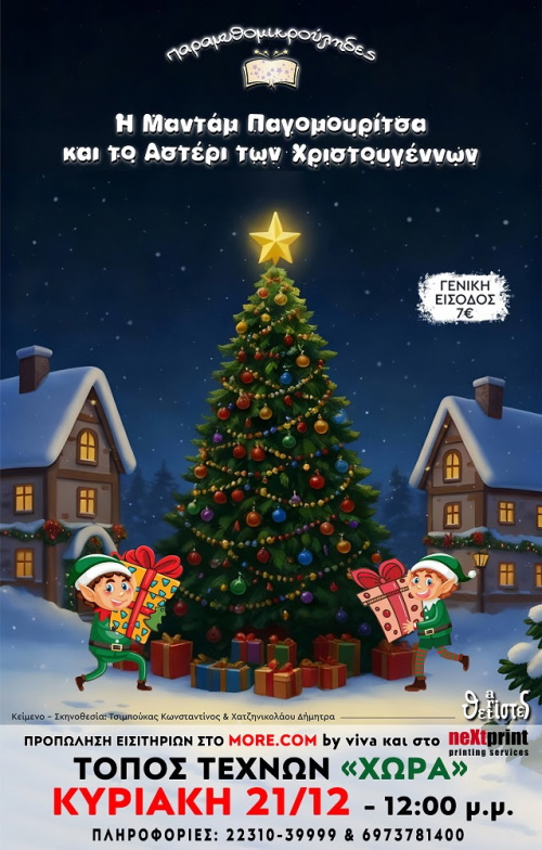 Κυριακή 21 Δεκεμβρίου 2025: Παράσταση κουκλοθέατρου: «Η Μαντάμ Παγομουρίτσα και το Αστέρι των Χριστουγέννων»