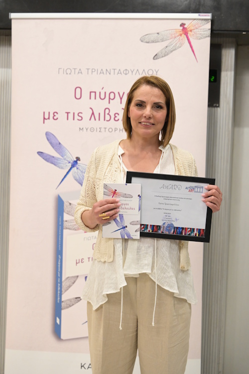 Την Πέμπτη 10 Απριλίου 2025 και ώρα 19.30 στην αίθουσα «Ρήγας Φεραίος» του Πολεμικού Μουσείου Αθηνών, έγινε με επιτυχία η παρουσίαση του βιβλίου ”Ο πύργος με τις λιβελούλες” της συγγραφέα Γιώτας Τριανταφύλλου. Απηύθυναν χαιρετισμό ο Αντώνης Γκορτζής, Πρόεδρος των «Φίλων του Πολεμικού Μουσείου» και ο Γιώργος Τσούκαλης, ιδιωτικός ερευνητής, εκ μέρους των διεθνών ομίλων International Action Act και UNESCO Πειραιώς και Νήσων. Για το βιβλίο μίλησε ο Ιωάννης Καμνής, Αντιστράτηγος ε.α. νομικός MSc Κοινωνικής Ψυχιατρικής.