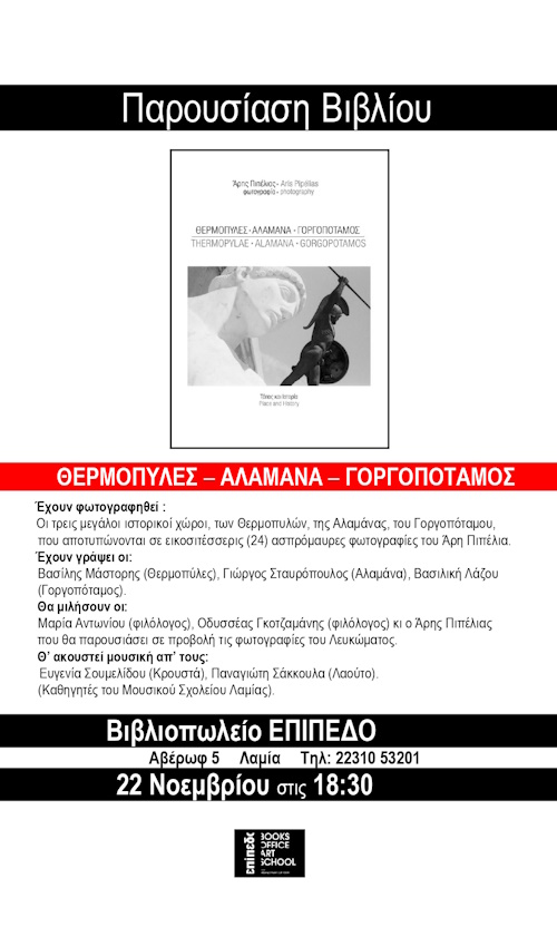 Παρουσίαση του λευκώματος του Άρη Πιπέλια “Θερμοπύλες – Αλαμάνα – Γοργοπόταμος / ο τόπος μας, η ιστορία μας” την Παρασκευή 22 Νοεμβρίου