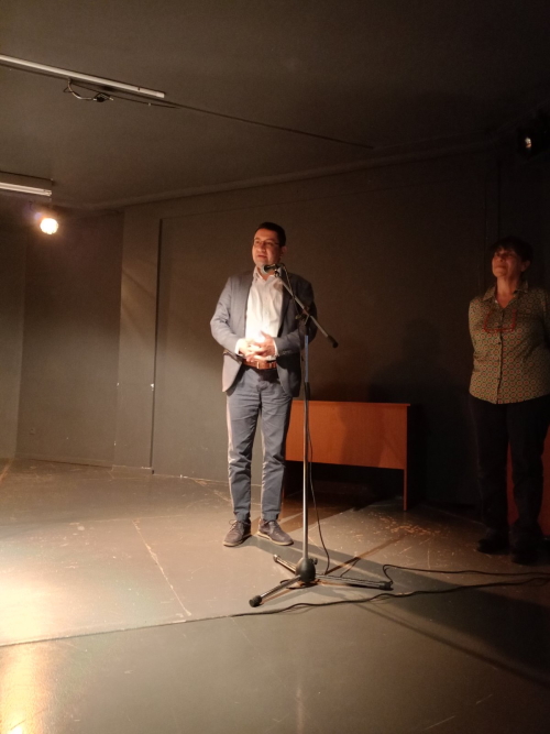 Ο Δήμαρχος Λοκρών κ. Αθανάσιος Ζεκεντές και η διευθύντρια του Ωδείου Αταλάντης κ. Άννα Μουζάκη, στους χαιρετισμούς τους τόνισαν την σημαντικότητα της επίτευξης του στόχου του καλλιτέχνη και την συμβολή του καθηγητή κ. Σταύρου Ξύνδα σε αυτό.