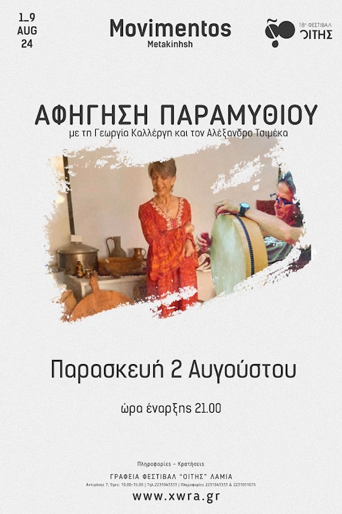 ΑΦΗΓΗΣΗ ΠΑΡΑΜΥΘΙΟΥ με τη Γεωργία Καλλέργη και τον Αλέξανδρο Τσιμέκα ώρα έναρξης 9 μ.μ.