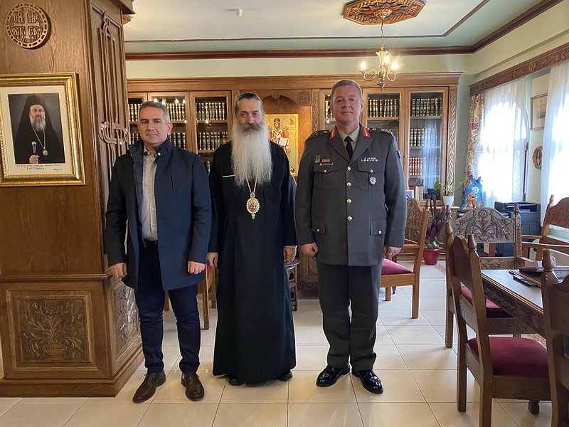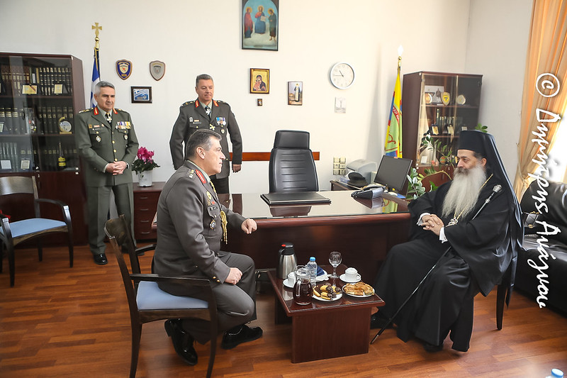 Ο κ. Συμεών επίσης δέχθηκε στο γραφείο του, στο Πνευματικό και Διοικητικό Κέντρο της Ιεράς Μητροπόλεως Φθιώτιδος στη Λαμία, την πρώτη εθιμοτυπική επίσκεψη του νέου Διοικητή του Κ.Ε.Υ.Π. Ταξίαρχου Πέτρου Περιμένη συνοδευόμενου από τον απερχόμενο Διοικητή, Υποστράτηγο ε.α. Αναστάσιο Μαυρομάτη, ενώ ευλόγησε και την τελετή παράδοσης – παραλαβής της Διοικήσεως του Κέντρου Εκπαιδεύσεως Υλικού Πολέμου, παρουσία του Επιτελάρχου Διοικητικής Μέριμνας ΑΣΔΥΣ, Υποστράτηγου κ. Ιωάννη Ανδριώτη.
