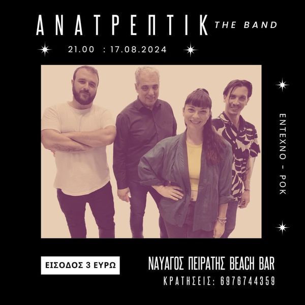 Μουσική εκδήλωση με τους ”Avatar the Band” το Σάββατο 10 Αυγούστου και ώρα 21:00 μ.μ. στον Ναυαγό Πειρατή, στον Άγιο Κωνσταντίνο Φθιώτιδας.