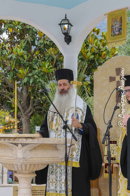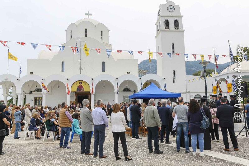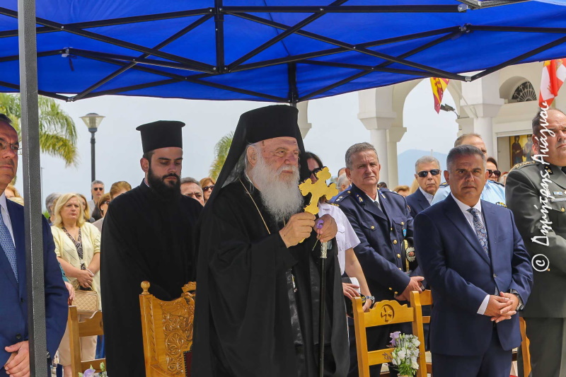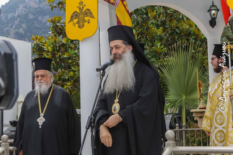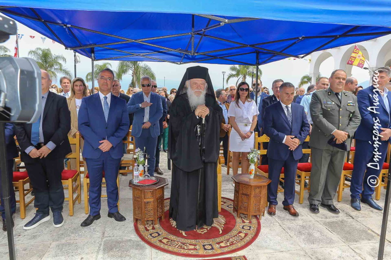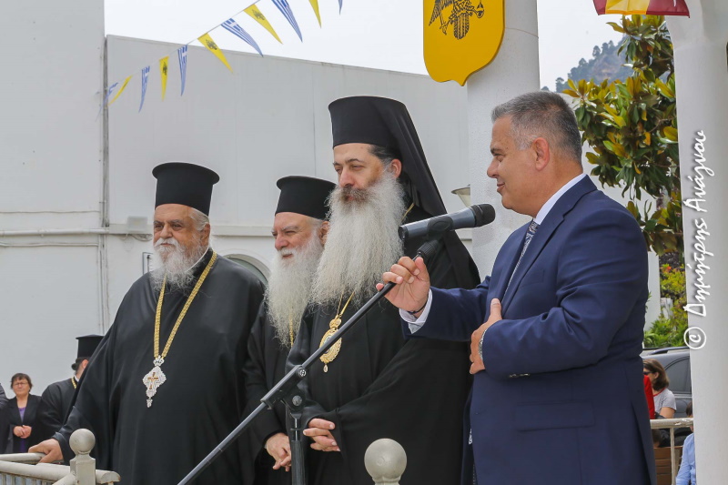 Σήμερα έχουμε τη χαρά και την τιμή να κηρύσσουμε από αυτό εδώ τον όμορφο κι ευλογημένο τόπο την επίσημη έναρξη της θερινής τουριστικής περιόδου. Κάτω από τη σκέπη του Πολιούχου μας Μεγαλομάρτυρα και Ιαματικού Αγίου Παντελεήμονα και στο προαύλιο του πανέμορφου Ιερού Ναού του. Ενός Ναού, που το λευκό του διαχρονικά καθαρίζει τις ψυχές μας, φωτίζει τις σκέψεις μας και ιαίνει τα ανθρώπινα πάθη μας.