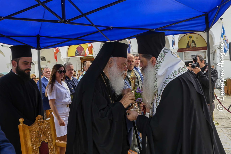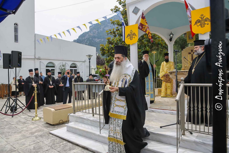 Ο Ελληνισμός. Και θα έρθω να σταματήσω ιδιαίτερα στο ξεκίνημα της αναγεννήσεως της ελευθερίας σε αυτόν τον τόπο και των δώρων που μας έδωσε η πονεμένη Ελληνική Επανάστασις. Στην πρώτη Εθνοσυνέλευση λοιπόν κλήθηκαν οι λίγοι επίσκοποι, μητροπολίτες θα λέγαμε σήμερα, και είπαν ότι πρέπει να γίνει το ξεκίνημα για την ελευθερία. Για δείτε κάτι που πρέπει να το σημειώσουμε. Εδώ σε αυτή την περιοχή υπήρξε μια μορφή ο Νεόφυτος, προκάτοχος του Μητροπολίτου σας ως Μητροπολίτης Ταλαντίου, που αρχιεράτευσε και σε όλο αυτό το κομμάτι, και μέχρι την Αθήνα αργότερα ως ο πρώτος εκ των προκατόχων μου. Αυτοί λοιπόν είπαν ότι για να γίνει η επανάστασις και να γίνει ο αγώνας, αρχηγοί πρέπει να είναι οι Επίσκοποι. Θα αναφερθώ σε ένα έγγραφο, εντολή από την Εθνοσυνέλευση γράφει προς τα παλικάρια της ανατολικής Εύβοιας: ετοιμαστείτε για εξέγερση του τόπου που θα ξεκινήσει από την Καρυστία και τα νησιά του Αιγαίου τα κοντινά μας, αρχηγός σας ποιος θα είναι; Ο επίσκοπος Καρύστου! Εντολή λοιπόν στα παλικάρια να πάνε να δηλώσουν στον επίσκοπο, ότι θα είναι ο αρχηγός της επαναστάσεως.