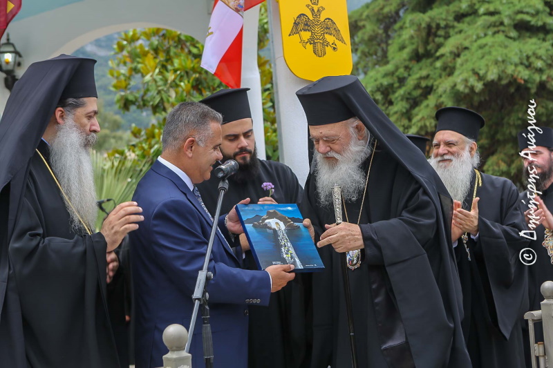 Και ύστερα να έρθω στις όμορφες, τις προσγειωμένες σκέψεις του Δημάρχου σας, που πραγματικά ακούγοντάς τον, τον καμαρώνω διότι σπάνια ακούμε καθαρό λόγο, ξεκάθαρο λόγο. Είναι για μένα αυτή η συναντήσις και αυτή η επίσκεψις σήμερα ομολογουμένως μια αναβάπτιση, είναι ένας πάλι προβληματισμός. Αν πρέπει τα μικρά πράγματα να τα αφήσουμε να μας χωρίζουν, αν πρέπει να σιωπούμε, να ασχολούμεθα με αυτά που μας κάνουνε μικρούς και να μην μπορούμε να υπερβάλλουμε τις δυσκολίες να τις περιφρονήσουμε και να ενώσουμε τις δυνάμεις μας. Σήμερα εδώ σε αυτό τον χώρο που τιμούμε τον Όσιο Βησσαρίωνα, τον γέροντα τον τιμηθέντα από το Πατριαρχείο μας και με την διάκριση της αγιότητος. Πολλοί από μας μεταξύ των οποίων και εγώ τον γνωρίσαμε. Ήταν ο απλός άνθρωπος , δεν ήταν ο φιλόσοφος ήταν αυτός όμως που ήξερε τα μυστικά της ζωής.