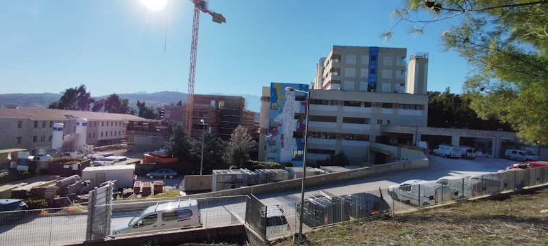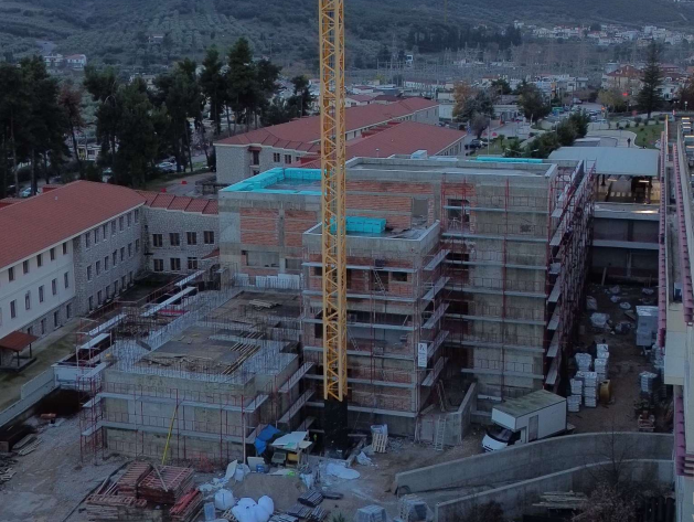 Στο κεντρικό κτίριο – το οποίο αποτελείται από τέσσερις στάθμες και απόληξη κλιμακοστασίου – έχει ολοκληρωθεί ο φέρων οργανισμός.