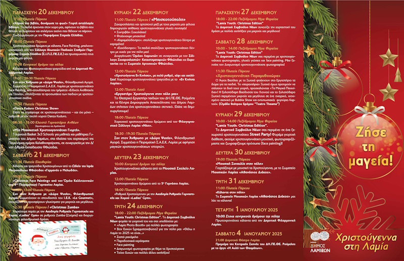 Η μαγεία των Χριστουγέννων ζωντανεύει στον Δήμο μας γεμίζοντας τις ψυχές μας με φως κι αγάπη. Με μια σειρά εορταστικών εκδηλώσεων και δράσεων ο Δήμος Λαμιέων θα γιορτάσει τη μεγάλη γιορτή των Χριστουγέννων.