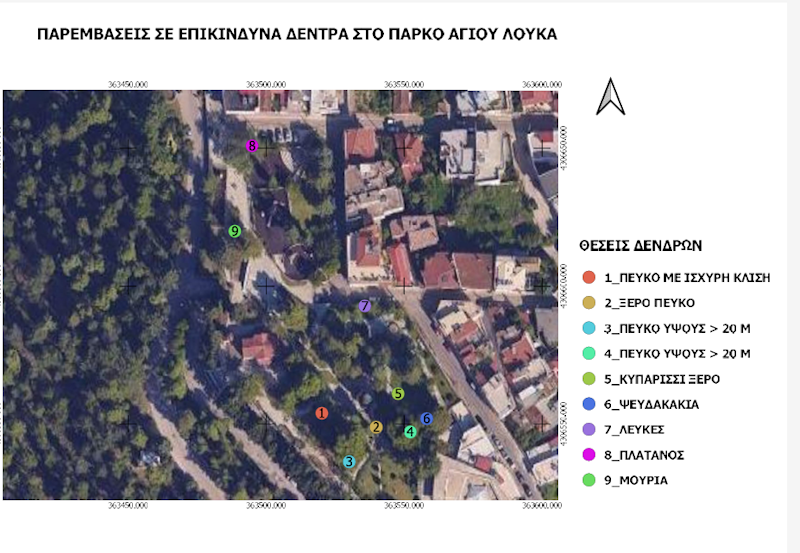Οι εργασίες υλοποιήθηκαν σύμφωνα με απόφαση του Δημοτικού Συμβουλίου, η οποία στηρίχθηκε σε επίσημη αυτοψία που πραγματοποίησε πιστοποιημένος δασολόγος. Ο δασολόγος διαπίστωσε ότι τα συγκεκριμένα δέντρα ήταν πλήρως ξερικά ή βαριά προσβεβλημένα, αποτελώντας άμεσο κίνδυνο σε περίπτωση θραύσης και πτώσης. Η απομάκρυνσή τους κρίθηκε απαραίτητη, καθώς η περιοχή του Αγίου Λουκά δεν είναι ένας τυπικός χώρος πρασίνου, αλλά ένας ζωντανός πνεύμονας αναψυχής της πόλης, όπου περπατούν καθημερινά παιδιά και γονείς, αθλούνται πολίτες και πραγματοποιούνται συναντήσεις και δραστηριότητες. Η ασφάλειά τους αποτελεί για τον Δήμο μας αδιαπραγμάτευτη προτεραιότητα.