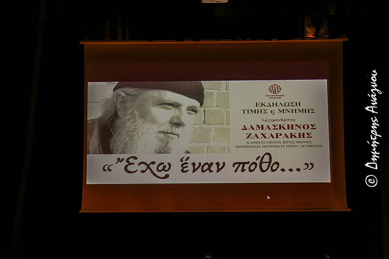 Με την παρουσία του Σεβασμιωτάτου Μητροπολίτου Φθιώτιδος κ. Συμεών, ο οποίος είχε και την πρωτοβουλία της σχετικής εκδήλωσης, κληρικών, εκπροσώπων πολιτειακών, στρατιωτικών και θεσμικών φορέων του τόπου και εκατοντάδων πιστών πραγματοποιήθηκε χθες το απόγευμα της 4ης Δεκεμβρίου 2024 στο Αμφιθέατρο του Πνευματικού και Διοικητικού Κέντρου της Ιεράς Μητροπόλεως Φθιώτιδος στη Λαμία η εκδήλωση τιμής και μνήμης αφιερωμένη στο εμβληματικό έργο του μακαριστού Καθηγουμένου της Ιεράς Μονής Κοιμήσεως της Θεοτόκου Οσίου Αγάθωνος Αρχιμ. π. Δαμασκηνού Ζαχαράκη με τίτλο: «Έχω έναν πόθο…».