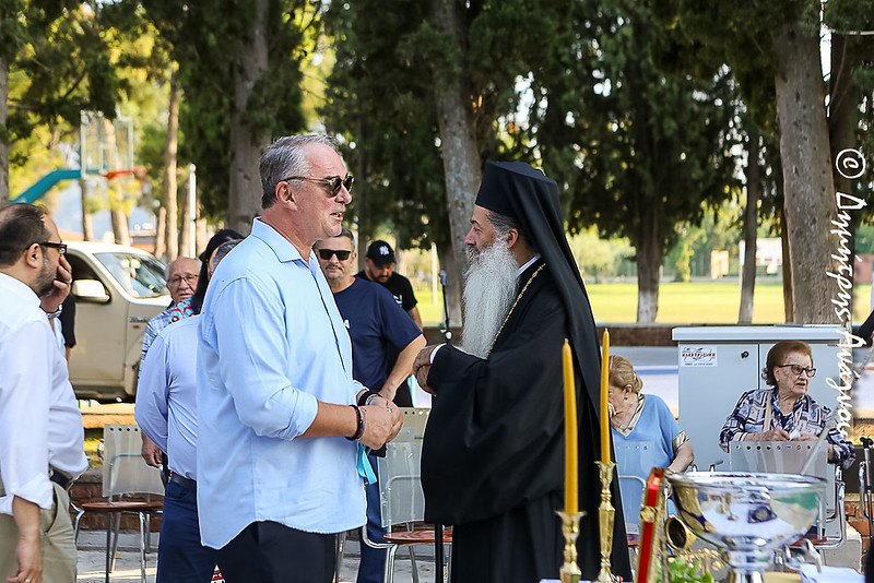 Τον κ. Συμεών στον αγιασμό των Εγκαινίων πλαισίωσαν οι υπεύθυνοι ιερείς του Κατασκηνωτικού Κέντρου, ενώ παραβρέθηκαν οι βουλευτές Φθιώτιδος κ. Ιωάννης Οικονόμου και Κ. Γεώργιος Κοτρωνιάς, ο Αντιπεριφερειάρχης Π.Ε. Φθιώτιδος κ Ηλίας Σανίδας, οι θεματικοί Αντιπεριφερειάρχες κ. Ηλίας Καλτσάς, κ. Κωνσταντίνος Αποστολόπουλος και κ. Χρήστος Ταξίδης, ο Δήμαρχος Λαμιέων κ. Πανουργιάς Παπαϊωάννου, ο οικείος Δήμαρχος Καμένων Βούρλων κ. Ηλίας Κυρμανίδης με μέλη των Δημοτικών Συμβουλίων, εκπρόσωποι της Περιφέρειας Στερεάς Ελλάδος, ο Διοικητής του ΚΕΥΠ Ταξίαρχος Πέτρος Περιμένης, ο Διευθυντής της Αστυνομικής Διευθύνσεως Φθιώτιδος κ. Ανδρέας Κυρίτσης, ο Διοικητής της Πυροσβεστικής Υπηρεσίας Φθιώτιδος Πύραρχος Χρήστος Πλουμάκης, η Λιμενάρχης Αγίου Κωνσταντίνου ….., επιχειρηματίες της περιοχής, καθώς και τα παιδιά, τα οποία φιλοξενούνται αυτές τις ημέρες στο Κατασκηνωτικό Κέντρο μαζί με Στελέχη του Γραφείου Νεότητος της Ιεράς Μητροπόλεως.