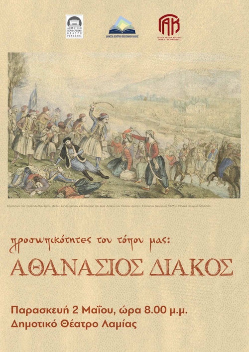 Εκδήλωση για την τοπική ιστορία «Προσωπικότητες του τόπου μας: Αθανάσιος Διάκος» τη Παρασκευή 2 Μαΐου στο Δημοτικό Θέατρο Λαμίας