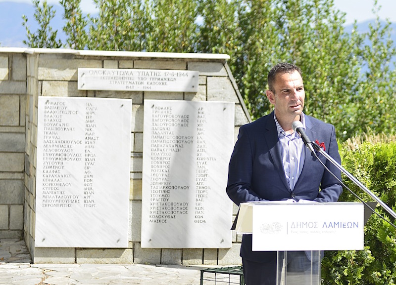 Ογδόντα χρόνια μετά, στην Υπάτη του μαρτυρίου και της θυσίας, βρισκόμαστε εδώ με συνέπεια, για να διατηρήσουμε την ιστορική μνήμη, να τη μεταφέρουμε στις επόμενες γενιές, κυρίως όμως να αποτίσουμε το φόρο τιμής στα θύματα του Ολοκαυτώματος, σε εκείνους που η ζωή τους έγινε προσφορά στην πατρίδα, στην ελευθερία, στις εθνικές μας αξίες. Να μπορέσουμε να αποδεχτούμε το τραγικό γεγονός της απώλειας της ανθρώπινης ζωής, που αποκτά νόημα μόνο από τη θυσία σε μια ανώτερη αξιακά οντότητα, όπως η πατρίδα.